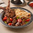 900₺İri doğranmış kuzu eti, kuzu pirzola, cherry domates, yeşil biber, sarımsak, domates sos.
